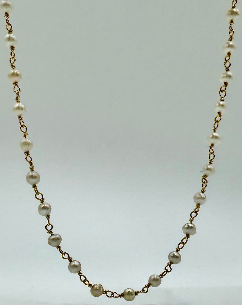This delicate gold pearl chain necklace is the perfect layering piece for everyday wear or special occasions.